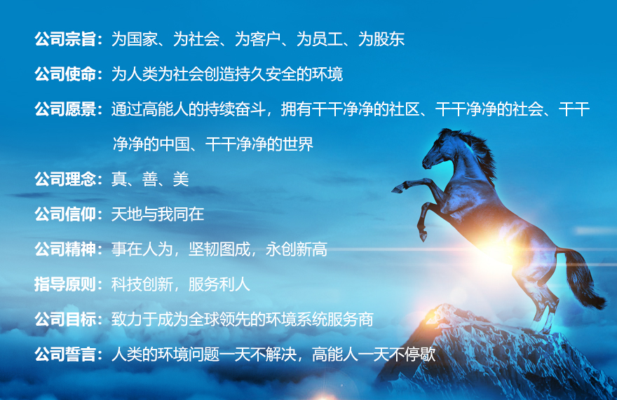 公司牢牢樹立“科技保障安全”的經(jīng)營理念,秉承“科技創(chuàng)新、服務(wù)利人”的指導(dǎo)原則,專注專行,打造中華領(lǐng)先、國際一流的環(huán)境技術(shù)企業(yè),全面踐行“為人類為社會創(chuàng)造持久安全的環(huán)境”的企業(yè)使命。