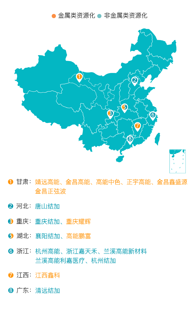 項目所在地覆蓋湖北、甘肅、江西、貴州、浙江等地,覆蓋區(qū)域對于跨省轉入危廢進行綜合利用政策均較為支持,形成明顯區(qū)域競爭優(yōu)勢。