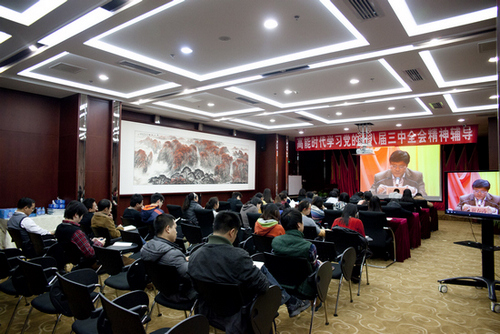 為深入學(xué)習(xí)貫徹黨的十八屆三中全會(huì)精神,12月10日,公司黨委在一層多功能廳組織全體黨員、群眾觀看了黨的十八屆三中全會(huì)精神視頻講座。輔導(dǎo)會(huì)由黨委委員柳寧主持,公司黨委成員及公司部分高管參加了會(huì)議。
