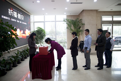 4月22日,為雅安地震災(zāi)區(qū)人民獻(xiàn)一份力,北京高能時(shí)代環(huán)境技術(shù)股份有限公司在一樓大廳組織募捐活動。