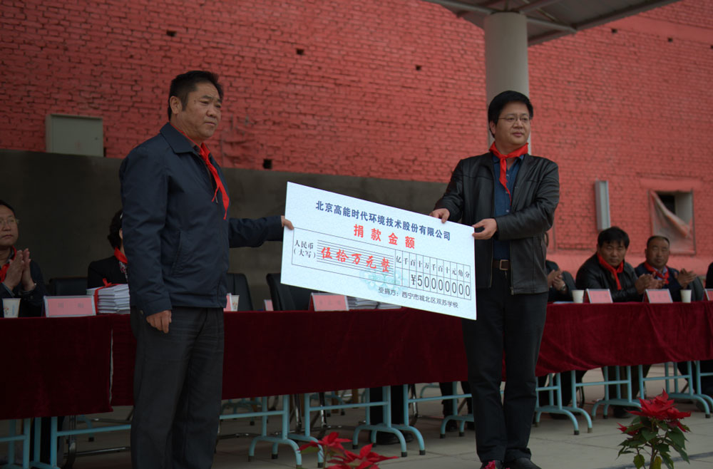 高能環(huán)境副總經(jīng)理齊志奇在捐贈儀式上這樣表示: 希望小學(xué),對于我們來說,付出的可能只是一小部分,可改變的,也許是這些孩子的整個人生,希望用我們的實際行動,帶給孩子們溫暖與關(guān)愛,同時激發(fā)廣大社會人士助人為樂的美好情懷,弘揚社會正能量。熱心公益,致力環(huán)保,一直是我們不變的情懷,高能環(huán)境與西寧市湟水投資管理有限公司合資成立環(huán)保公司,投資建設(shè)了西寧市第一個PPP項目——污泥綜合處置項目,并正致力于為西寧市創(chuàng)建文明城市、更好地保護西寧市乃至青海省生態(tài)環(huán)境做出更大貢獻(xiàn)!