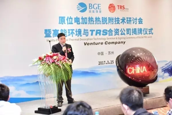 在與會嘉賓及行業(yè)專家共同見證下,高能環(huán)境總經理陳望明與美國TRS總裁Brett共同啟動揭牌儀式,宣布合資公司正式成立。陳望明總經理致辭表示,此次高能環(huán)境與全球領先的美國TRS公司強強聯合,成立合資公司,將為我國有機物污染場地提供優(yōu)質解決方案,大力提升我國污染場地修復實施技術和管理水平。Brett總裁發(fā)表演講,介紹了TRS公司概況、原位電加熱熱脫附技術及案例應用,他表示此次與高能環(huán)境達成戰(zhàn)略性合作,加強國際之間技術交流,將共同承擔和解決環(huán)境污染問題,迎接新挑戰(zhàn)。