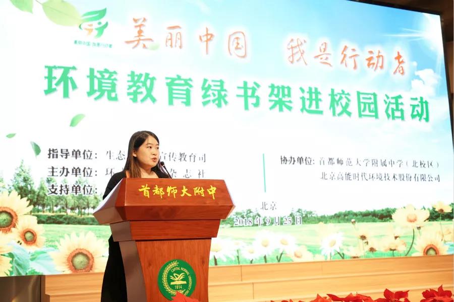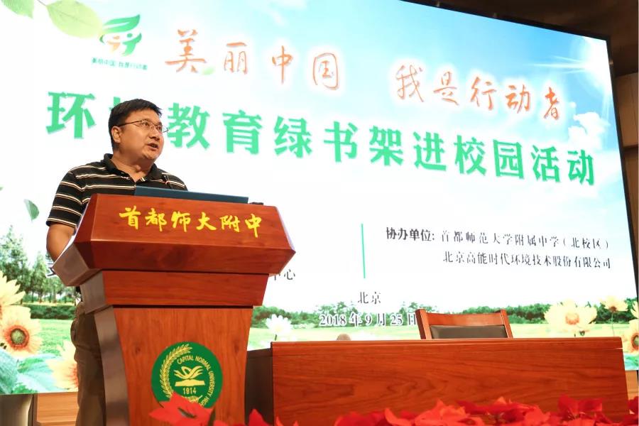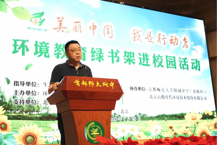 為促進(jìn)環(huán)境保護(hù)和生態(tài)文明知識(shí)進(jìn)校園,推動(dòng)北京市中小學(xué)環(huán)境教育工作,9月25日,由《環(huán)境教育》雜志社主辦,生態(tài)環(huán)境部宣傳教育司指導(dǎo),高能環(huán)境協(xié)辦的“綠書架”進(jìn)校園公益活動(dòng)在北京市首都師范大學(xué)附屬中學(xué)(北校區(qū))舉行。北京市環(huán)保宣傳中心主任張立新、《環(huán)境教育》雜志社社長(zhǎng)王曉飛等領(lǐng)導(dǎo)出席活動(dòng)。