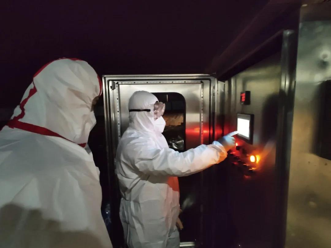 針對(duì)上述問(wèn)題,高能環(huán)境團(tuán)隊(duì)啟用其獨(dú)有的“醫(yī)療廢物處置系統(tǒng)”。該系統(tǒng)以移動(dòng)式醫(yī)療廢物焚燒方艙為主要設(shè)施,配置自動(dòng)提升、破碎進(jìn)料裝置,可對(duì)醫(yī)療廢物進(jìn)行車載式小型焚燒、高溫?zé)峤?,同時(shí)利用集成高效的煙氣凈化設(shè)備,減少二次廢物,該系統(tǒng)還具備自動(dòng)清洗、紫外線消毒功能,可24小時(shí)持續(xù)運(yùn)行,有效處置了疫情防治所產(chǎn)生的口罩、防護(hù)服、鞋套等高感染性廢物。