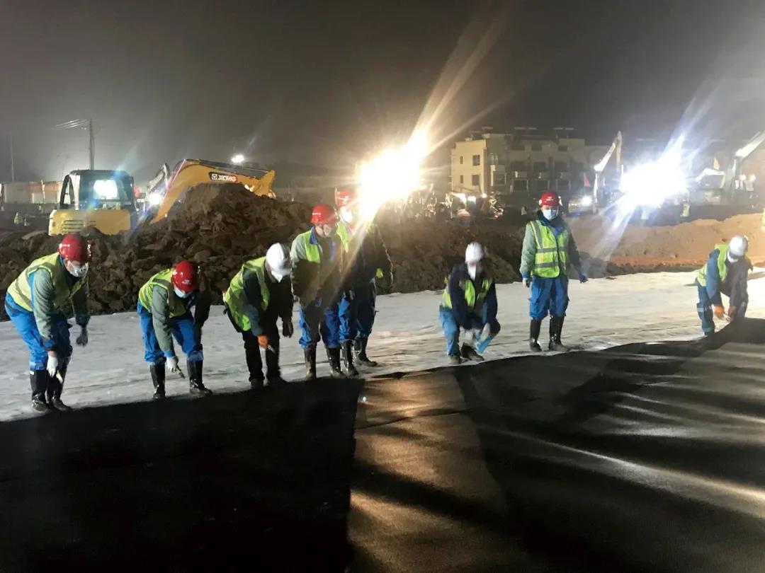 高能環(huán)境應(yīng)急團(tuán)隊(duì)為火神山醫(yī)院鋪設(shè)防滲膜