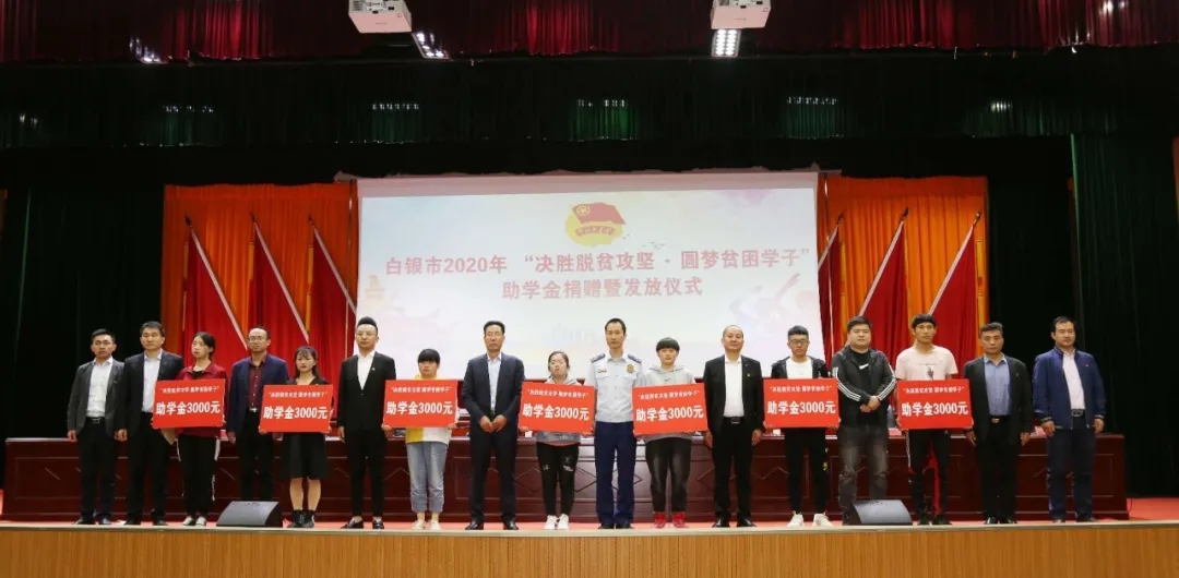 近日,白銀市2020年“決勝脫貧攻堅·圓夢貧困學(xué)子”助學(xué)金捐贈暨發(fā)放儀式在景泰縣圓滿落成。白銀市政協(xié)副主席常升文、市總工會副主席洪海濤、市婦聯(lián)副主席楊鵬宇、靖遠(yuǎn)縣委副書記高斌、會寧縣委常委、組織部部長周春材、白銀區(qū)副區(qū)長陶韋娜、平川區(qū)副區(qū)長肖誠;縣區(qū)團(tuán)委負(fù)責(zé)人、捐資愛心企業(yè)單位及個人,受助學(xué)生代表及家長共計300余人參加了捐贈儀式。