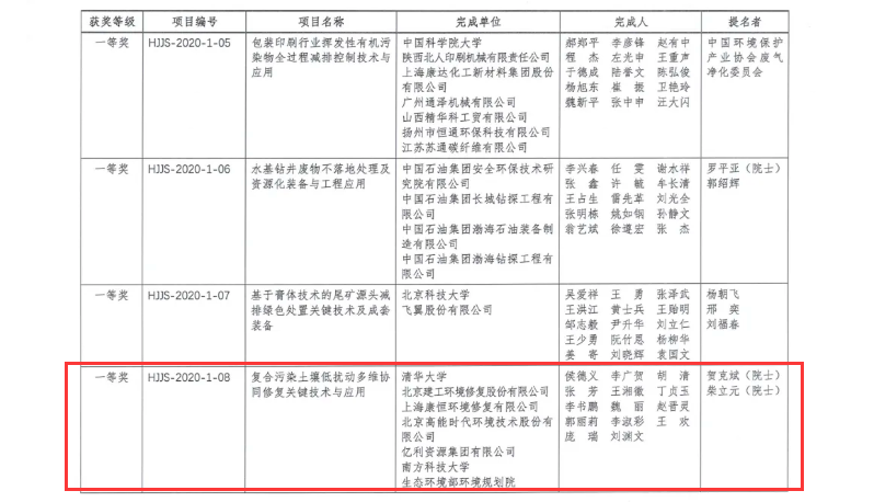 近日,中國(guó)環(huán)境保護(hù)產(chǎn)業(yè)協(xié)會(huì)正式對(duì)外揭曉第二屆環(huán)境技術(shù)進(jìn)步獎(jiǎng)結(jié)果。由高能環(huán)境(603588)參與完成的“復(fù)合污染土壤低擾動(dòng)多維協(xié)同修復(fù)關(guān)鍵技術(shù)與應(yīng)用”脫穎而出,榮獲2020年度環(huán)境技術(shù)進(jìn)步獎(jiǎng)一等獎(jiǎng)。