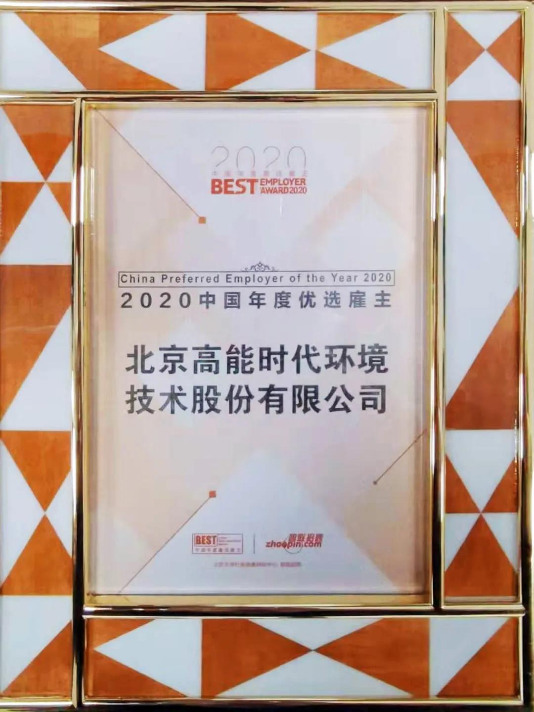高能環(huán)境榮獲“2020中國年度優(yōu)選雇主”稱號